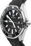 Швейцарские часы TAG Heuer WAY101A.FT6141 имеют каучуковый ремешок с тисненной поверхностью, браслетная застежка с системой удлинения для ношения поверх дайверского гермокостюма, раскладывающаяся при нажатии на предохранительные кнопки двойной блокировки, украшена логотипом TAG Heuer.