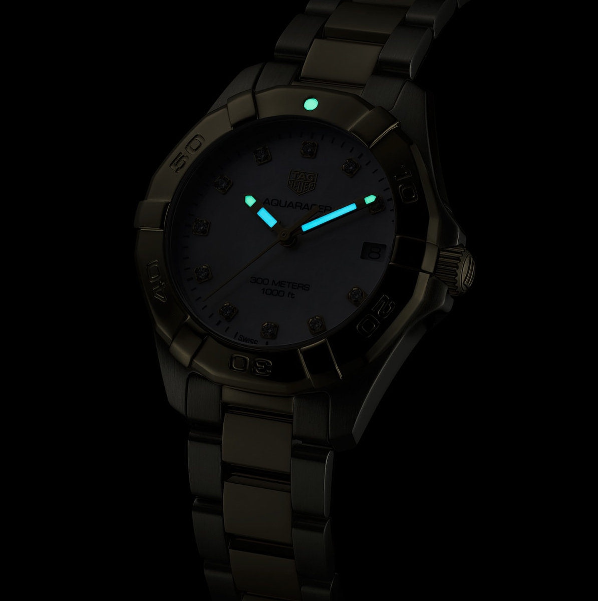 Швейцарские часы TAG Heuer Aquaracer WBD1322.BB0320 сочетают женственность с динамичным стилем и вдохновлены водными видами спорта. Исполнение премиум-класса и внушительный технические характеристики дополнены элементами роскоши. Вращающийся безель и переводная коронка с золотым покрытием, циферблат украшенный бриллиантами. Круглый корпус TAG Heuer Aquaracer Quartz с высокой степенью водозащиты и литой браслет выполнены из нержавеющей стали. Швейцарский кварцевый механизм TAG HEUER с высокой точностью хода и надежностью.