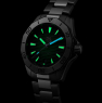 Циферблат изумрудно-зеленого цвета с гильошированием в виде поперечных полос. Аппликация часовых индексов и стрелки с покрытием родием. Светящееся в темноте покрытие люминофором Superluminova стрелок и разметки циферблата.