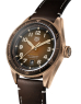 Фактурный дымчатый циферблат коричневого цвета с эффектом градиента обеспечивает читаемость показаний днем и ночью. Рисованные цифры в винтажном стиле. Стрелки с золотым покрытием и глянцевой полировкой.