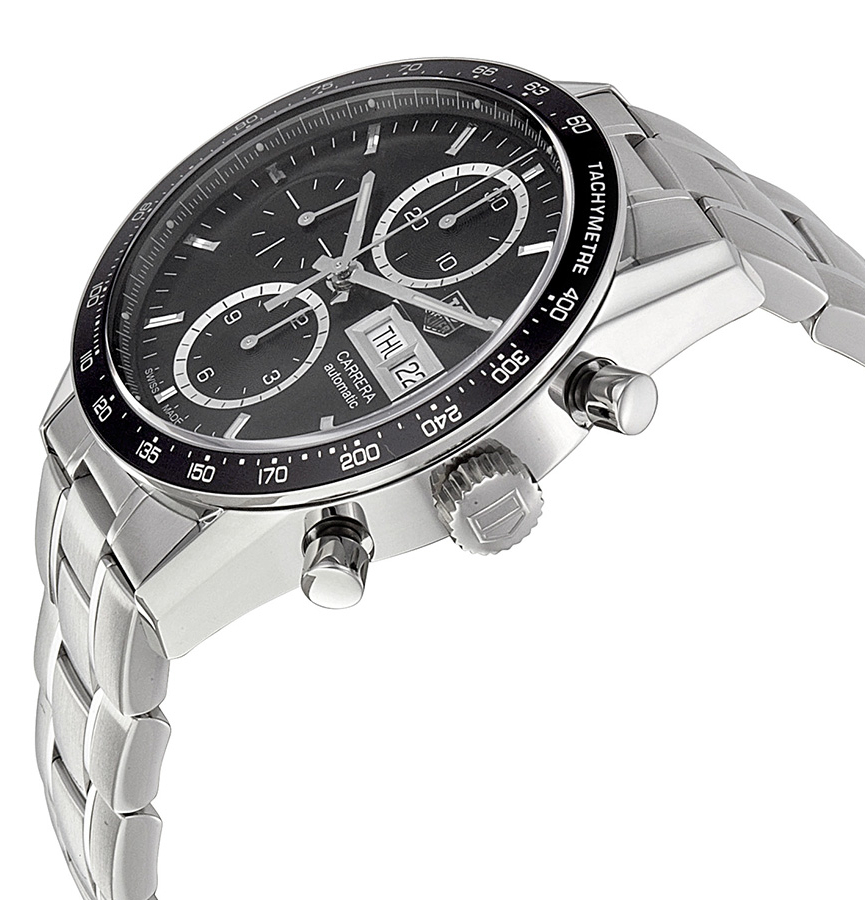 Швейцарские часы TAG Heuer CV201AG.BA0725 имеют браслет с литыми звеньями из нержавеющей стали, браслетная застежка, раскладывающаяся при нажатии на предохранительные кнопки двойной блокировки, украшена эмблемой TAG Heuer.