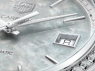 Циферблат из перламутра. Аппликация эмблемы TAG Heuer, часовых индексов и стрелки покрытием родием, ювелирной огранкой и глянцевой полировкой.