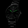 Циферблат черного цвета с гильошированием в виде концентрических кругов. Аппликация эмблемы TAG Heuer, часовых индексов, окантовки окошка даты и стрелки с покрытием родием, ювелирной огранкой и глянцевой полировкой. Светящееся в темноте покрытие люминофором Superluminova стрелок и разметки циферблата.