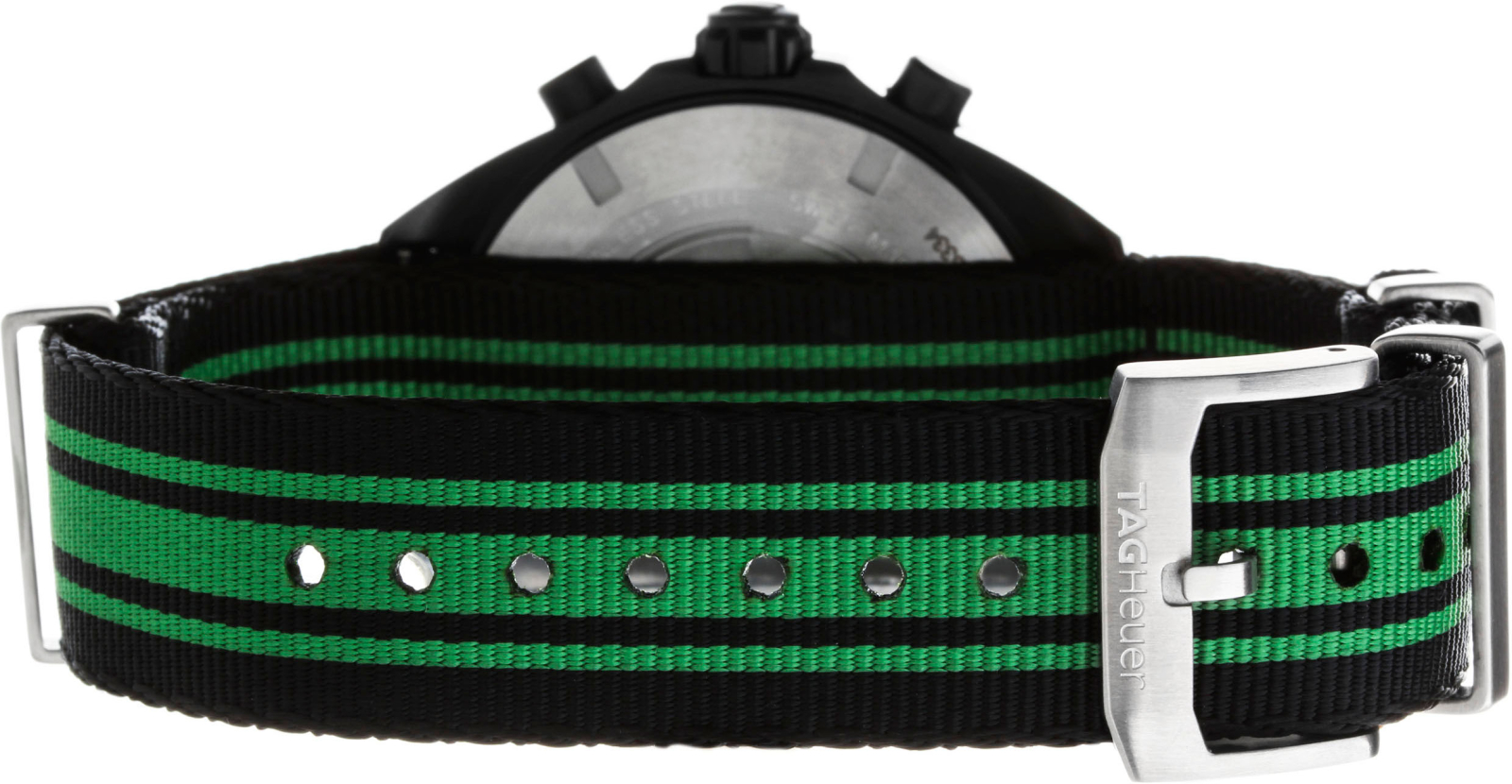 Швейцарские часы TAG Heuer CAZ1113.FC8189 имеют черно-зеленый текстильный ремешок в стиле NATO Strap из нейлона, традиционная застежка.