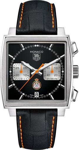 Швейцарские часы TAG Heuer Monaco CAW211K.FC6311 вдохновлены автомобильными гонками и являются продолжением легендарной модели созданной в 1969 году. Тогда швейцарская часовая марка представила первый в мире хронограф с квадратным корпусом. В 1971 году на экраны вышел культовый фильм «Ле-Ман» с легендарным актером и автогонщиком Стивом Маккуином на запястье которого была одна из моделей Monaco. Часы TAG Heuer Monaco ACM Automobile Club de Monaco Edition выпущена в честь автомобильного клуба из Монако, объедияющего любителей спортивных ретро автомобилей. Отличительной особенностью модели стал циферблат специальным оформлением и эмблемой автоклуба. Лимитированная серия ограничена 1200 экземплярами.