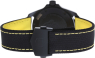 Циферблат черного цвета с пескоструйной обработкой и гильошированием в виде поперечных полос, ярко-желтые акценты и окраска секундной стрелки. Аппликация часовых индексов и стрелки покрытием родием, ювелирной огранкой и глянцевой полировкой. Светящееся в темноте покрытие люминофором Superluminova стрелок и разметки циферблата.