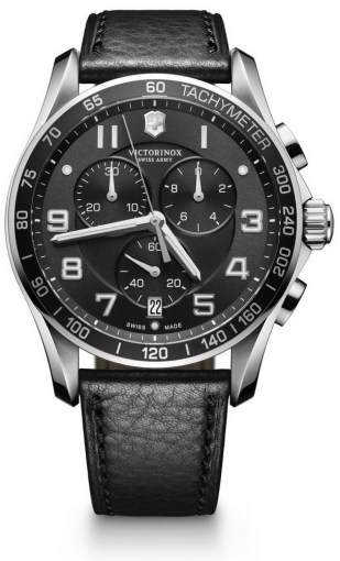 Представленная модель входит в коллекцию Swiss Army. Это настоящие мужские часы. Материал корпуса часов — сталь. В этих часах используется сапфировое стекло. Циферблат содержит часы, секунды. В этой модели используются такие усложнения как дата, хронограф. Корпус часов в диаметре 45мм.